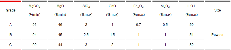 Our magnesium carbonate can be used as raw materials for magnesium products. Its application is widely ranged from magnesium salt, magnesium oxide, fireproof coating, printing ink, pottery, glass, toothpaste to rubber packing.